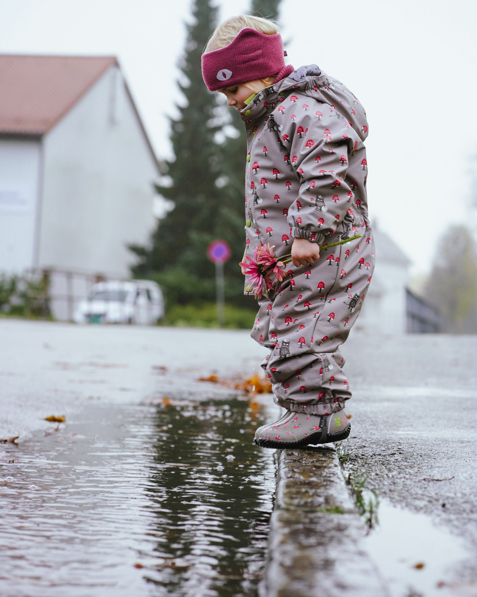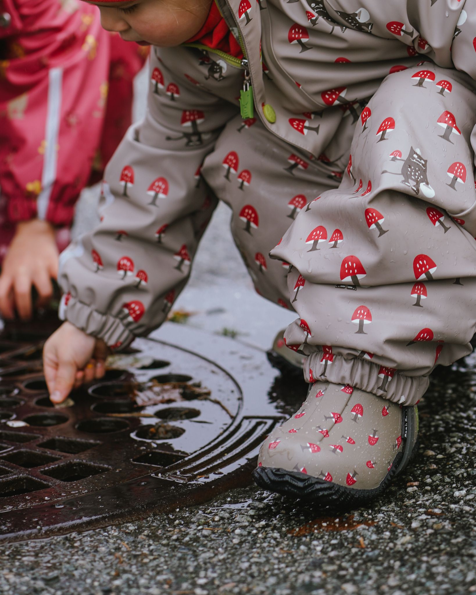 Vår designer Silje tenker gjennom heile garderoben når ho lagar kolleksjonen – frå regndress til lue og sokkar. I Tolvmeterskogen 2025 er alle ullplagga fargematcha med regntøyet – slik at du kan mikse og matche akkurat slik barnet ditt likar det!